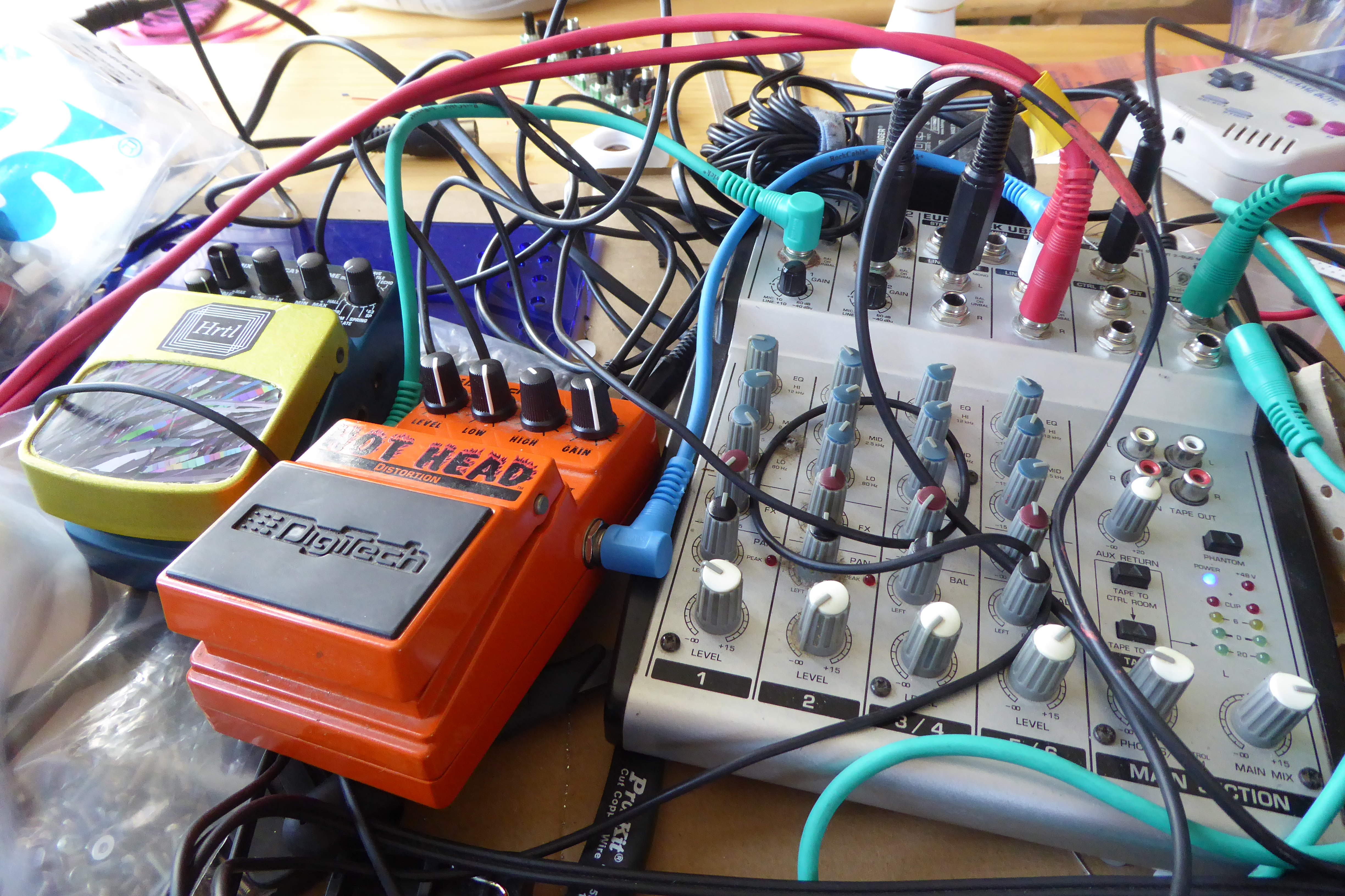 Der Grundstock meiner künstlerischen Arbeit ist ein Synthesizer. Das Spannende daran ist die Klangforschung. Das heisst, man kann Klänge selber zusammenstellen. Der Strom wird so geleitet, dass die Lautsprechermembranen sich entsprechend bewegen, damit der gewollte Klang entsteht. Ich erzeuge sozusagen mit elektronischen Bauteilen Klänge. An die Bauteile kann man beliebig viele Teile anlöten. Je mehr Bauteile es sind, desto komplexer kann der Klang werden.