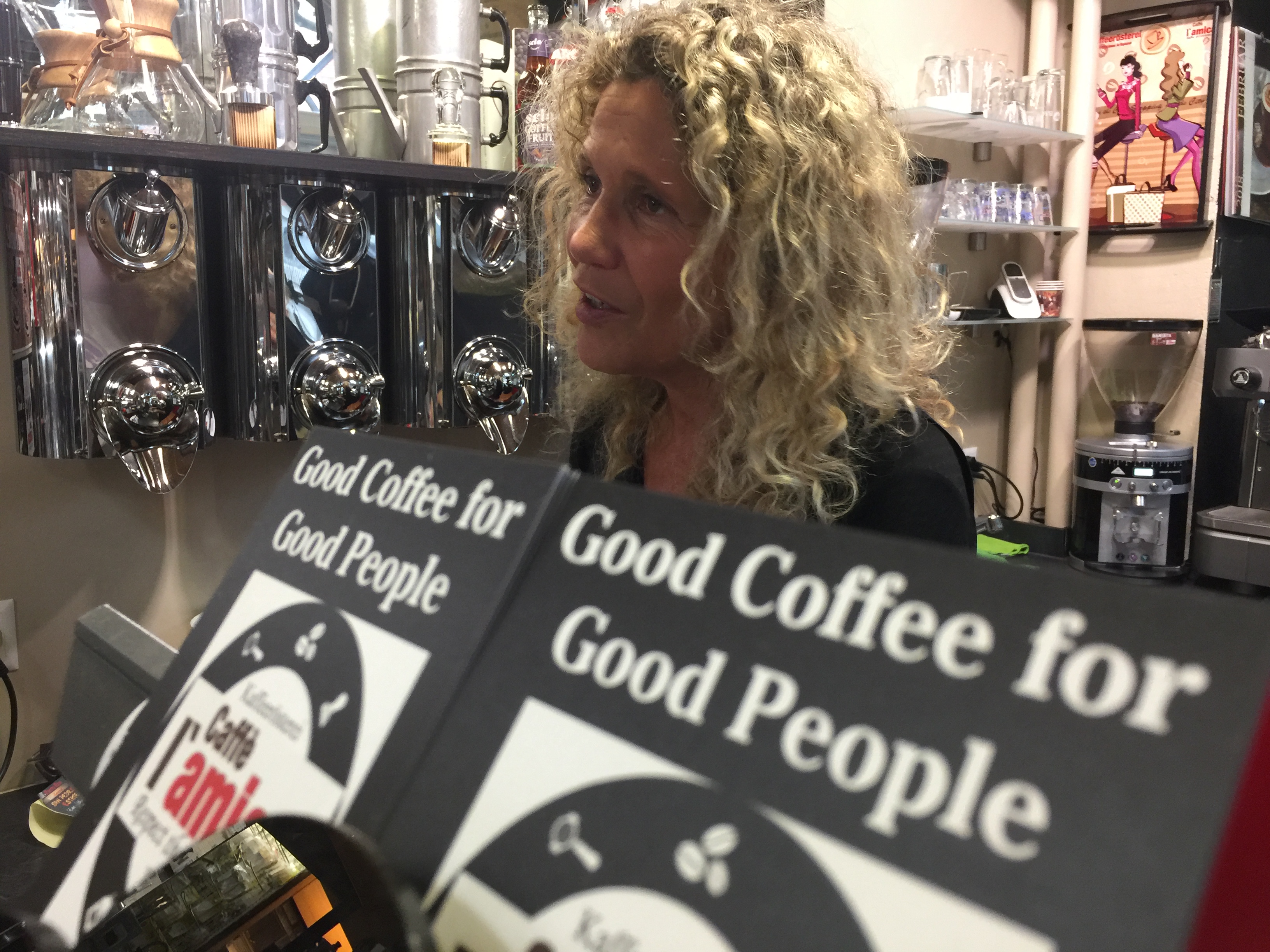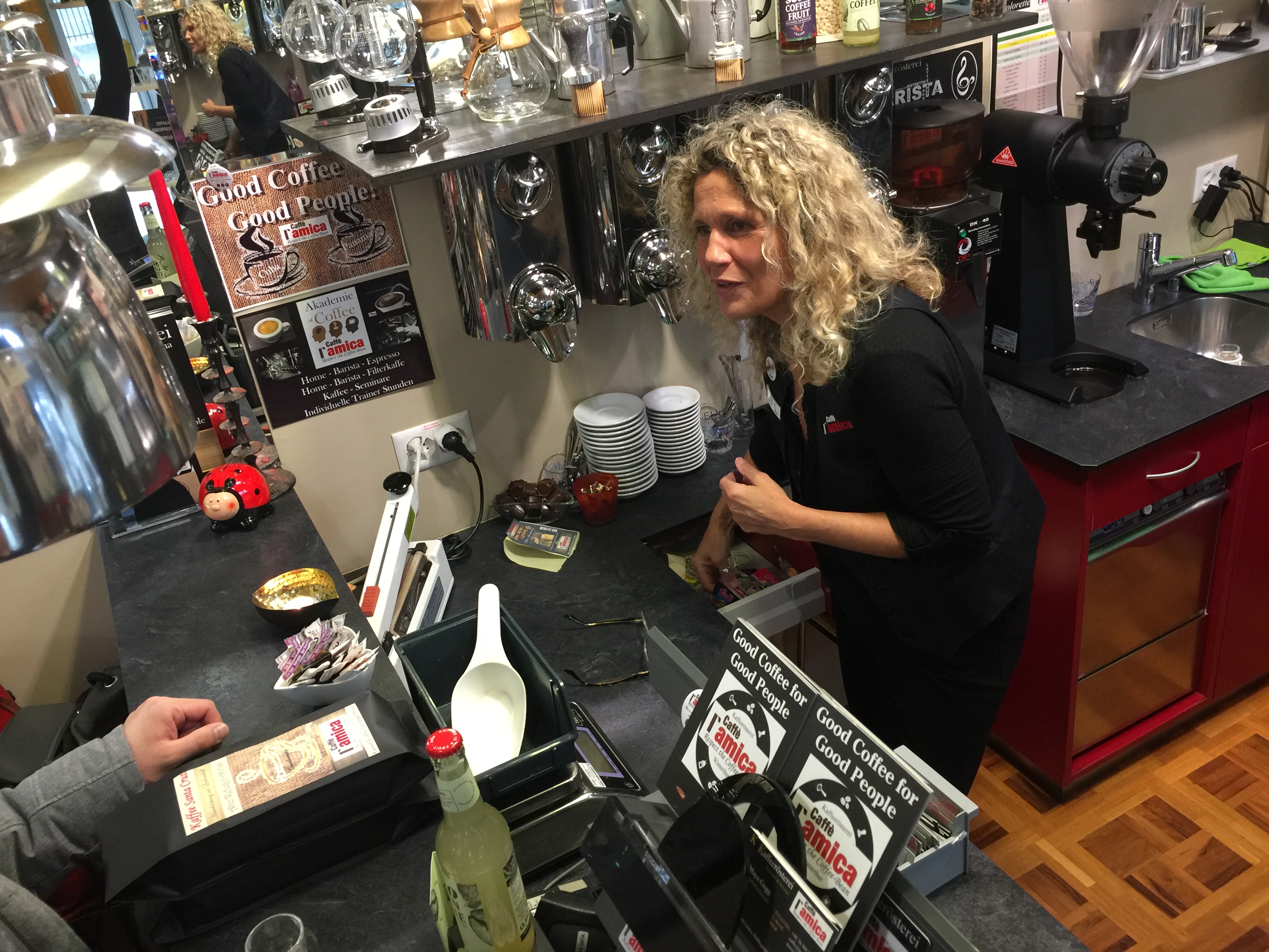 Ein herzliches Dankeschön an Maya für das Interview am 23.2.2018. Wenn Kundschaft kam, nahm sie sich trotzdem Zeit für angeregte Gespräche mit ihnen. So wurde mir klar, dass exzellenter Kaffee nicht nur von der Qualität der Bohnen abhängt, sondern auch vom Charisma der Verkäuferin. Es ist eine wahre Freude, im „L’amica“ frisch gemahlenen Kaffee zu kaufen und die neueste Kaffeemischung auszuprobieren!