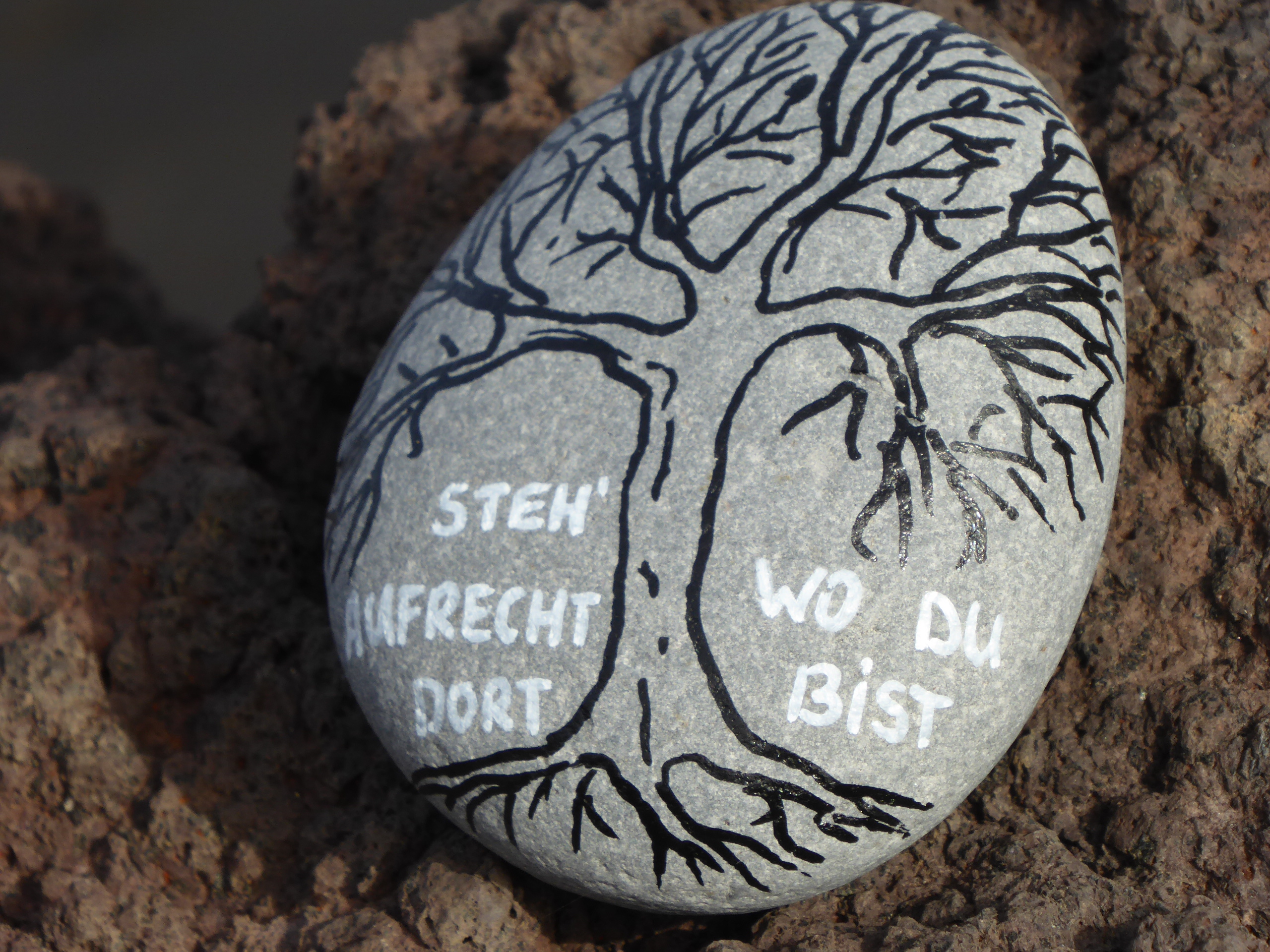 Mich fasziniert es, andere Menschen zu überraschen, sie mit meinen Gedanken-Steinen zum Nachdenken zu bringen, womöglich ein persönliches Thema an die Oberfläche zu bringen oder einfach mit einem kleinen Stein Freude zu bereiten. „Esoterische Ambitionen“ habe ich keine. Für mich sind diese kleinen Geschenke an unbekannte Menschen vielmehr auf „handfesten“ Steinen festgehaltene Gedanken und Anregungen.