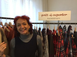 Evas Label nennt sich „prêt-à-reporter“, ein Wortspiel aus gutem Grund: Denn ihre Kreationen sind nicht allein dazu bereit sofort angezogen zu werden, sondern sind auch bereit zum wiederholten Mal getragen zu werden. Es handelt sich um individuelle Stücke, gefertigt aus alten, aussortierten Kleidungsstücken, vorwiegend aus Hosen und Hemden. Man sieht ihnen ihre Ursprünglichkeit an: ein Hosenbund bildet den neuen Saum eines Kleides und aus den Ärmeln eines Hemdes entsteht ein Jupe.