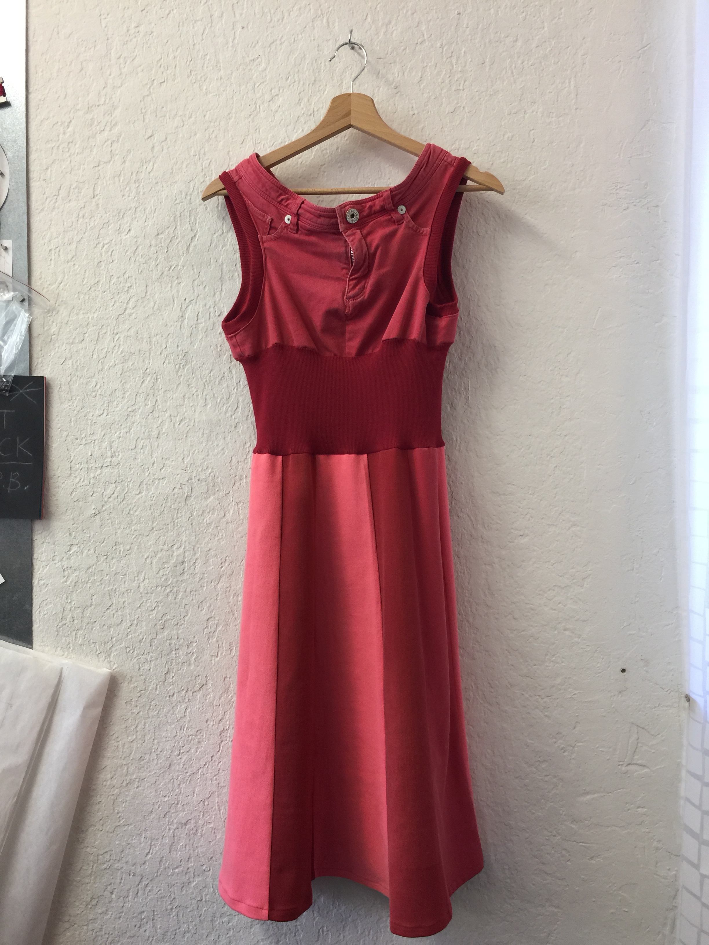 Das Upcycling-Handwerk ist zeitaufwändig, auch weil Eva sich um eine sorgfältige Verarbeitung und schöne technische Lösungen bemüht. Durch das „Umschneidern“ sollen die Kleider aufgewertet und gewissermassen veredelt werden.