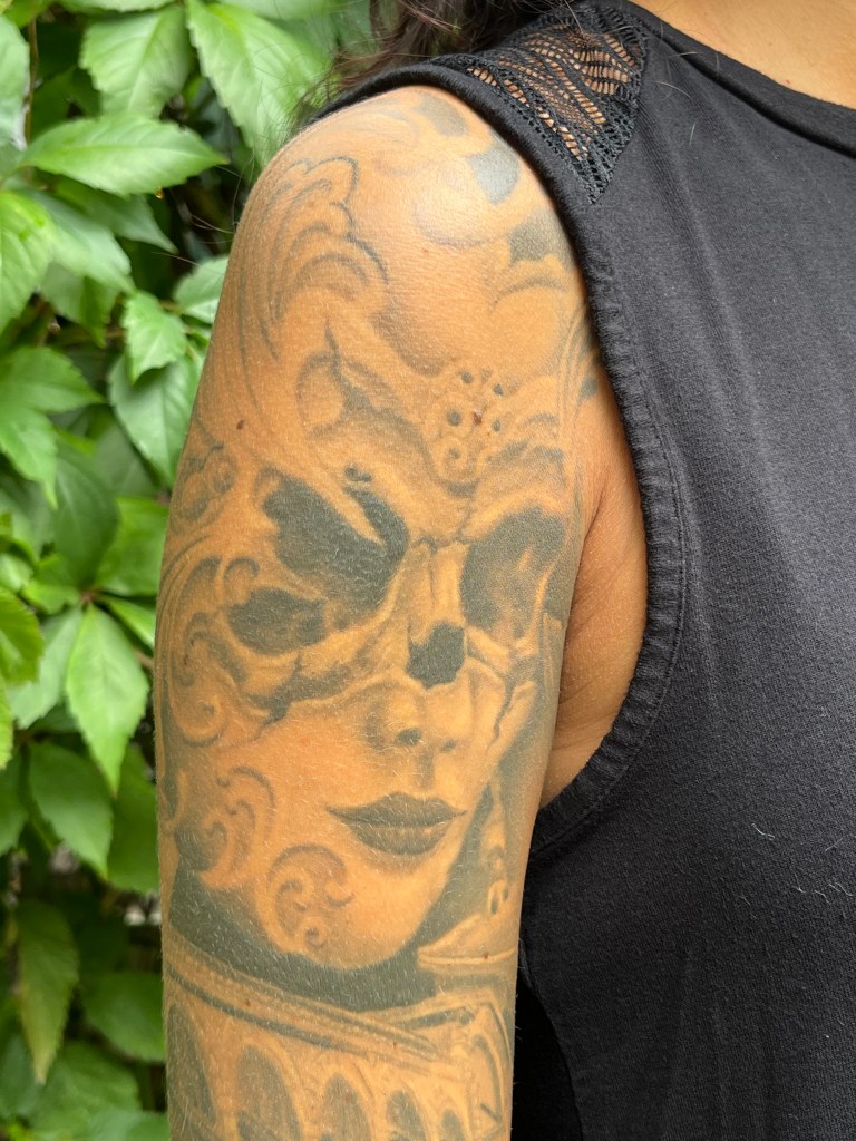 Samantha besitzt noch ein zweites, geheimnisvolles Ich, das fasziniert ist vom Tod. Sie erzählte mir davon erst nach vielen Jahren, während sie wieder einmal meine Haare schnitt. Als ich sie nebenbei nach ihrem Lieblingsschmetterling fragte, nannte sie treffenderweise den Totenkopfschwärmer. Seit diesem Gespräch verstehe ich die Bedeutung ihres kunstvoll gestalteten Oberarm-Tattoos viel besser.